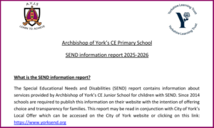 Archbishop of York’s CE Junior School welcomes all children and values them as individuals, treating them equally and with respect. We believe that all children have the right to have their own particular needs recognised and addressed in order to achieve success.